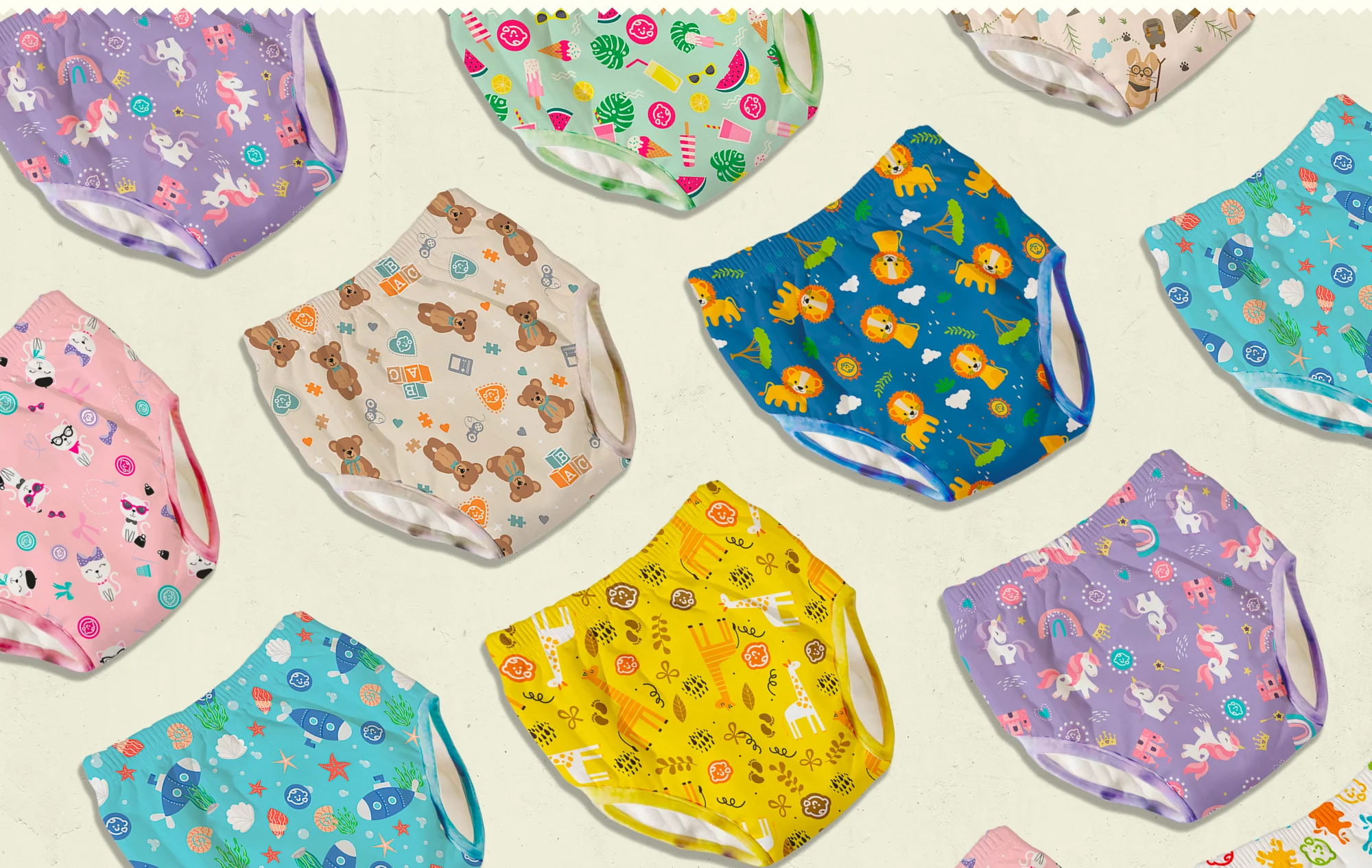 Découvrez nos culottes d’apprentissage aux motifs amusants et aux couleurs vives que votre enfant adorera porter