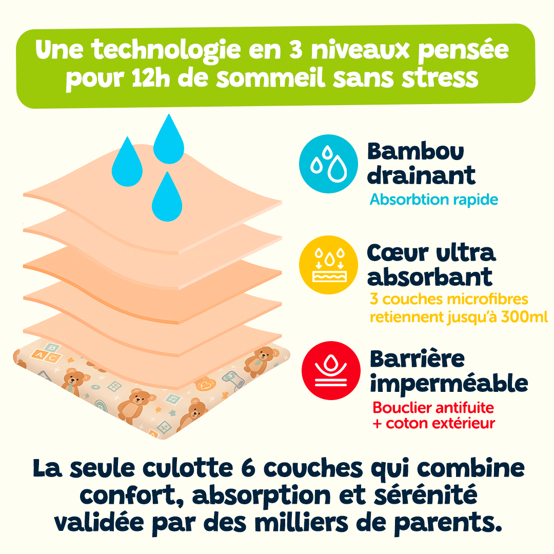 👉 L’enfant reste au sec et sans odeur même en cas d’accident nocturne.